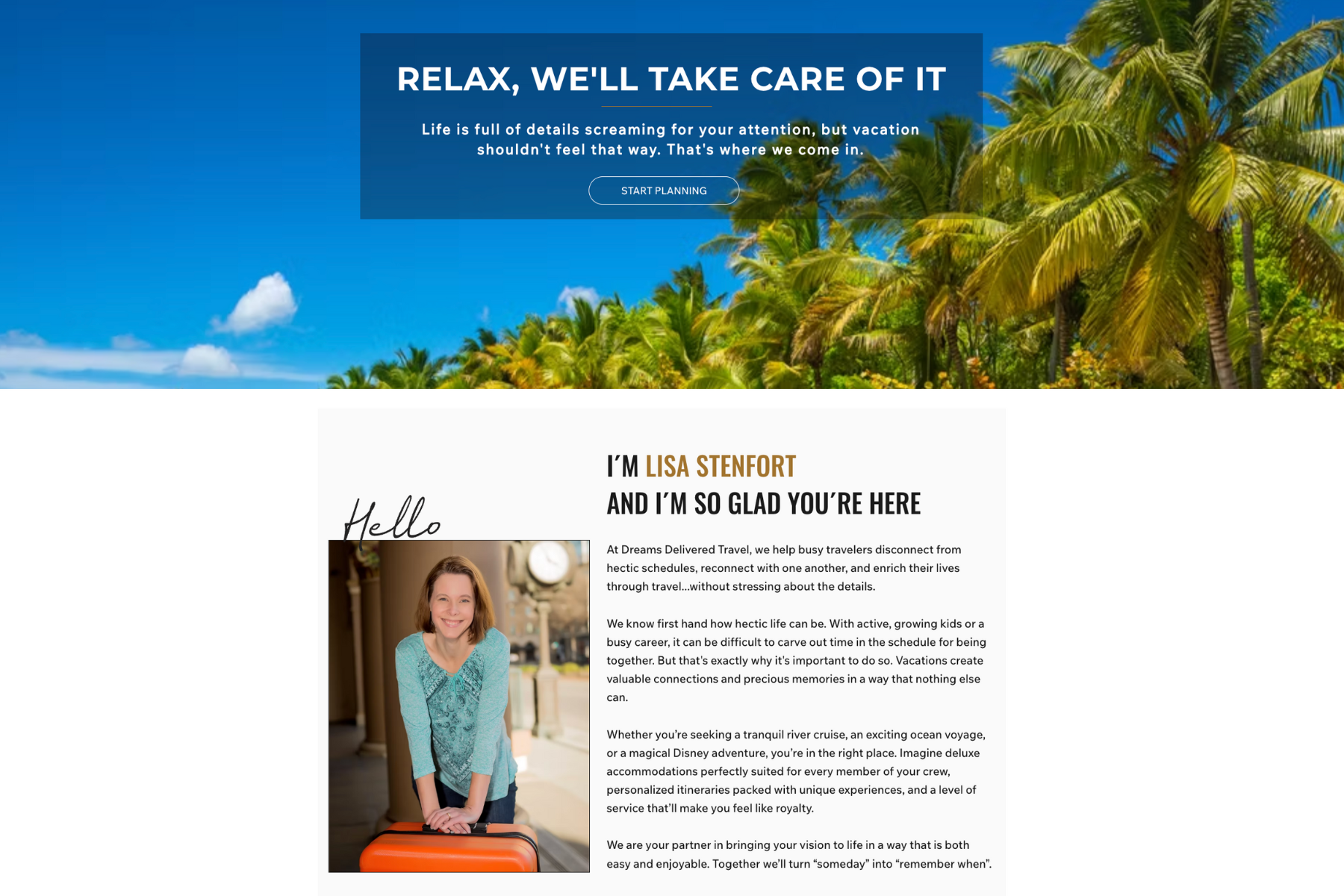 “I help busy families plan stress-free cruises and unforgettable Disney vacations.”